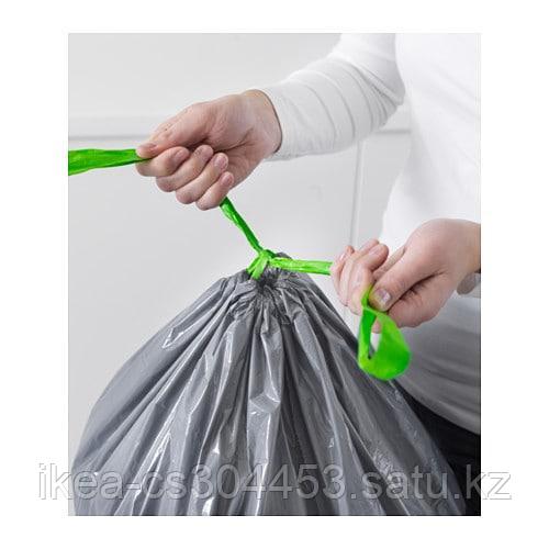 Благодаря завязке по верхнему краю мешок удобно закрыть и вынести.Благодаря плоскому дну полный мешок будет устойчиво стоять на полу.