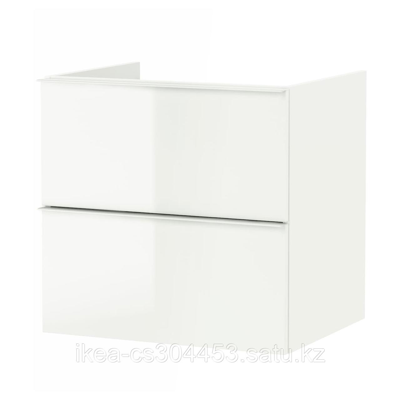 GODMORGON ГОДМОРГОН Шкаф для раковины с 2 ящ, глянцевый белый, 60x47x58 см